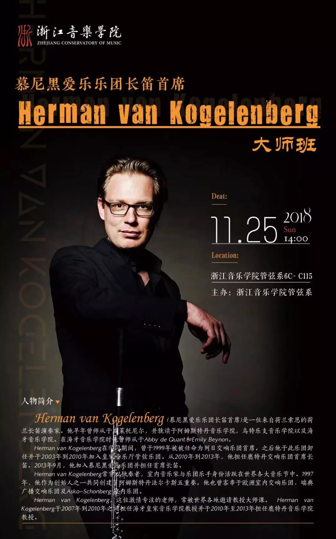 慕尼黑爱乐乐团长笛首席—— Herman van Kogelenberg 大师班