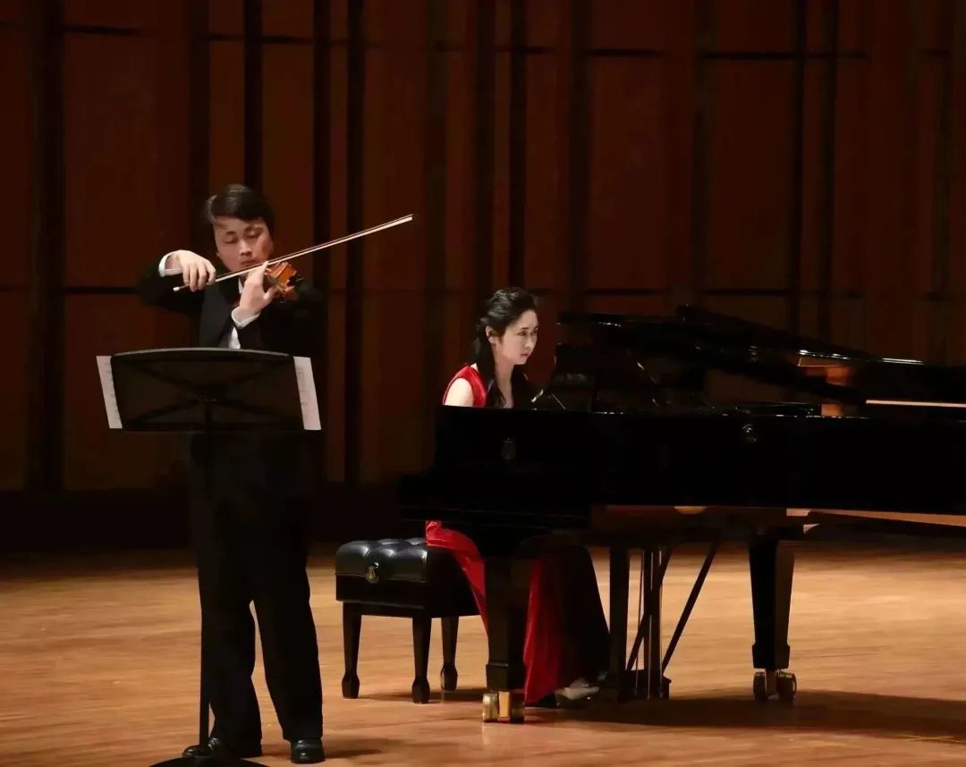 音乐会上,龚璇和钢琴系学生特邀管弦系教师盛贝贝,共同演奏了来自作曲与指挥系教师教师庞莉、张莹及学生们创作的13首新创中国钢琴曲。美妙的琴声让大家如身临祖国美好山河,领略丰富多彩的民族风情,感受人与自然的和谐琴音,让钢琴这种西洋乐器表现出了亲切的“中国味”,为师生带来一堂充满内涵的钢琴思政课。