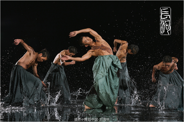 三是聚焦融合创新。创作团队教师积极发扬共产党人开拓创新精神,一改传统的舞剧叙事结构,以身体模拟形态,以形态进行言说。这一理念是相对抽象的,学生也是不容易接受的。为了解决排练中的这一问题,编导首先需要抓住的是中国人特有的身体律动,这种律动方式需要去中华文明土地上的各种民间舞蹈中找寻。《长河》没有选择以某一种民间舞蹈为出发点进行创作,而是在观测了各个民间舞蹈的律动之后,创新出一种新的舞蹈语汇,它具有中国性,也具有创新性。如此,学生在训练的过程中培养出符合中国气质与中国韵味的身体形态。以“淤泥”为例,它以极其慢速的动作变化模拟淤泥阻塞的状态,沉闷的气压让人窒息。生命的衰老亦是如此,拖着沉重的步伐,步履维艰,却依然向前。