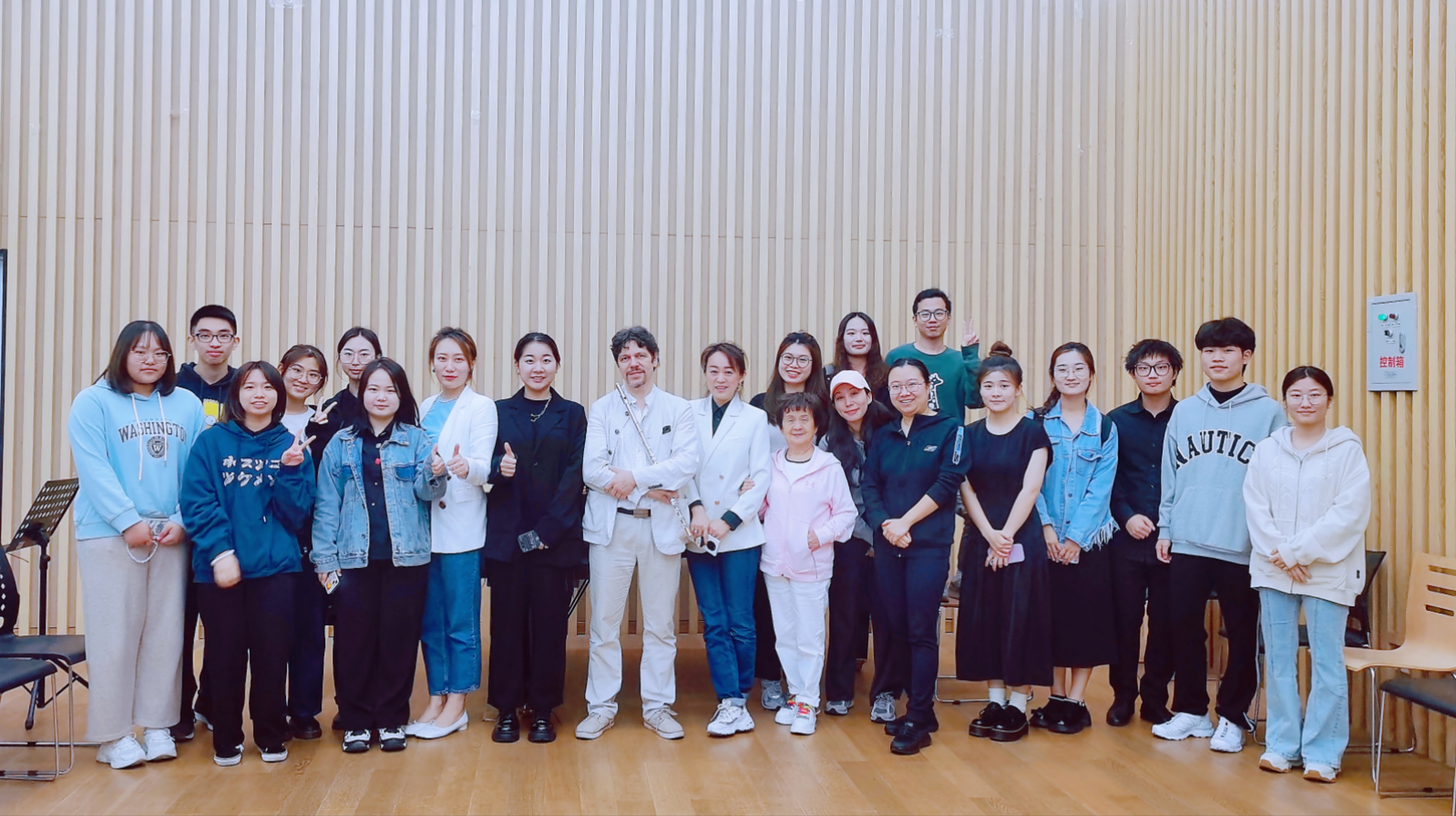 盖尔盖伊教授以长笛演奏的无限可能性为题,为同学们讲授了一堂内容丰富、干货满满的大师班。大师班上,管弦系多位学生演奏了巴赫的《奏鸣曲》、舒伯特的《美丽的磨房女主题变奏曲》、若里维的《奏鸣曲》等作品。盖尔盖伊教授亲自示范,对演奏中和弦的构想、吐音与音质变化,以及最根本的呼吸原理等问题做了细致精彩的讲解。他热情慷慨地解答了同学们的问题,让在场师生受益匪浅。