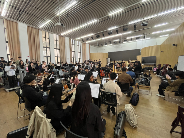 在排练中,大家准时准点到排练厅集合排练,每个人各司其职、配合默契,在无数次地重复排练中,每个声部互相衬托、和谐有序,音乐显得丰富又协调。那精益求精的态度是乐手的专业素养,更是管弦系师生积极向上、求真务实的精神风貌。最后的演出也不负众望,乐团的音响烘托极富感染力,将作品情节的渲染发挥到了极致,李清照跌宕起伏的一生被塑造得更加立体化、更加形象化。“生当作人杰、死亦为鬼雄”,乐团的音响起到了至关重要的作用,那寂寞、那凄凉、那悲怆,将全剧推向高潮。