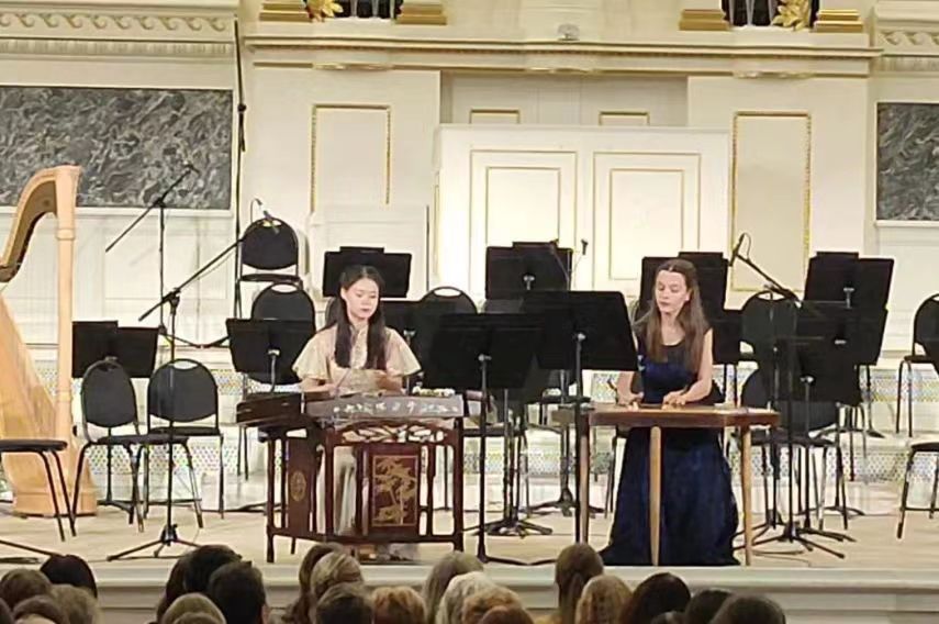 近日,由圣彼得堡作曲家协会主办的“第15届古弦新韵多弦民族乐器国际比赛暨国际艺术节”在俄罗斯圣彼得堡举行。本次艺术节邀请了包括中国、白俄罗斯等多国的民族多弦乐器演奏家,演奏了包括扬琴、古筝、箜篌、巴拉莱卡、辛巴利、古斯里琴等乐器。国乐系扬琴教师徐艺芳与学生尤煊颍受邀参加。尤煊颍还作为此次国际赛事获奖选手,参演了在卡佩拉音乐厅举办的两场音乐会,以扬琴协奏、独奏、重奏多种形式,展现中国扬琴艺术的独特风采和丰富表现力。