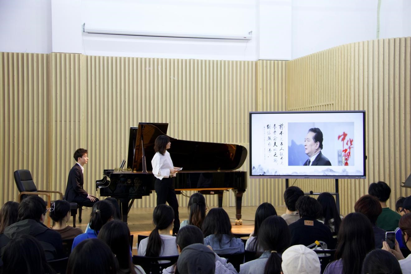 本次思政课创新性地将钢琴艺术与古代诗词深度融合,展现了音乐与文学跨界的艺术魅力。朱楣强调,中国诗词作为民族瑰宝,富含韵律美与意境美,不仅承载着历史印记与文化积淀,更以其独特的艺术形式激发人们的情感共鸣,是传承与发展中华文化的宝贵载体。她希望通过此次讲座,引领学生深入领略中华诗词之美,分享个人对诗词与文化的独特理解,并借助古诗词与钢琴表演的交融,使学生们能切身感受到诗人对国家的炽热深情、孤高独立的人格魅力以及自由洒脱的精神风貌,从而深化对古诗词魅力的认识,激发对音乐与文化的热爱,进一步增强对祖国和民族文化的自豪感。