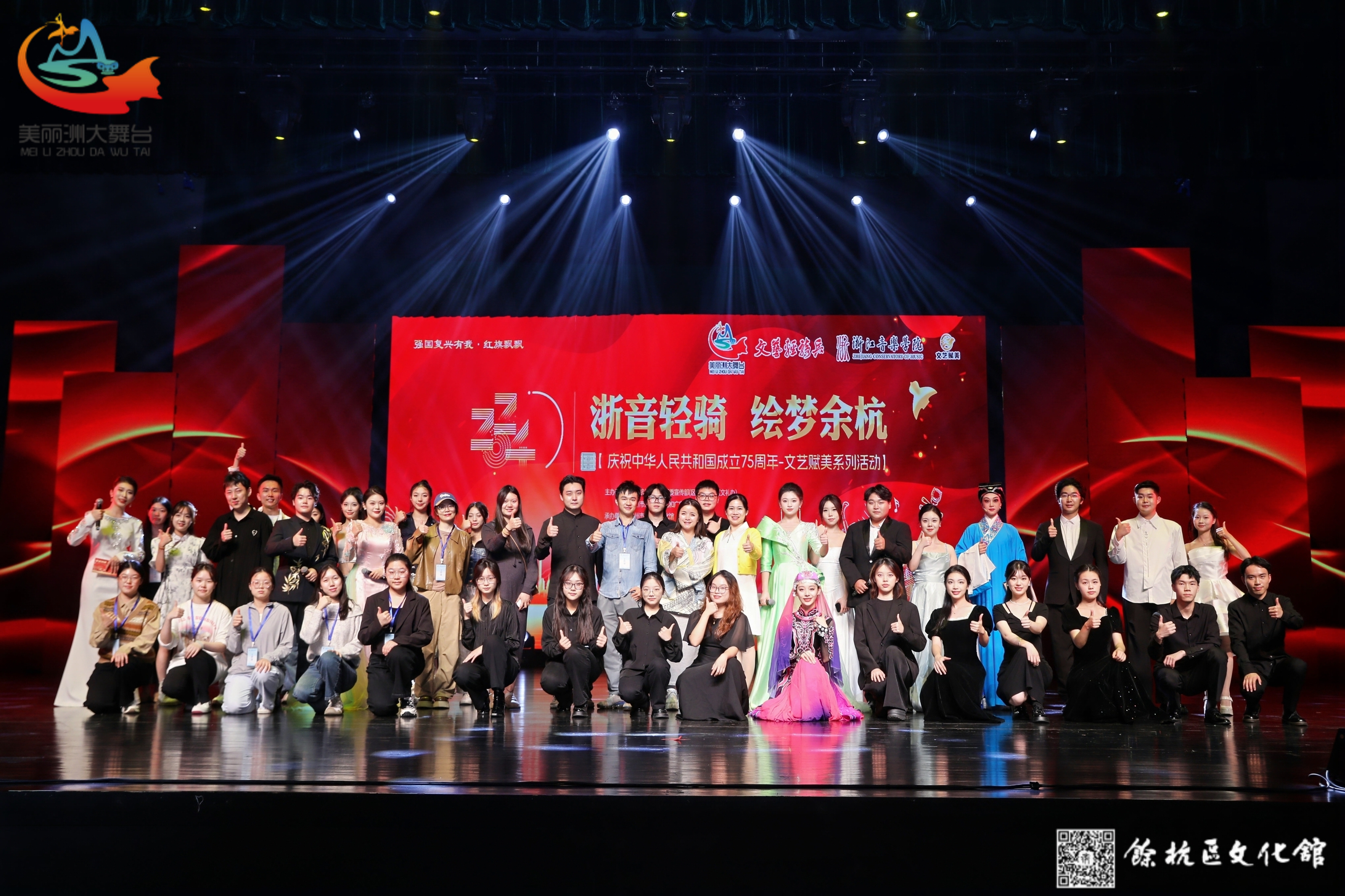 在习近平总书记文艺工作座谈会讲话十周年之际,“文艺轻骑兵”走进余杭,助力文艺事业繁荣发展。10月13日晚,杭州市余杭区文化地标——余杭苕溪大剧院热闹非凡,掌声雷动。由音乐教育学院、声乐歌剧系、流行音乐系、管弦系、戏剧系、舞蹈学院30余名同学组成的“文艺轻骑兵”队伍走进苕溪大剧院,成功开展了“浙音轻骑·绘梦余杭”庆祝中华人民共和国成立75周年暨余杭区“美丽洲”大舞台系列展演活动。本次活动完全由“文艺轻骑兵”自编、自导、自演,通过演唱、器乐、舞蹈等表演形式,共同助力余杭新中心建设,推进全民精神富有阔步向前。