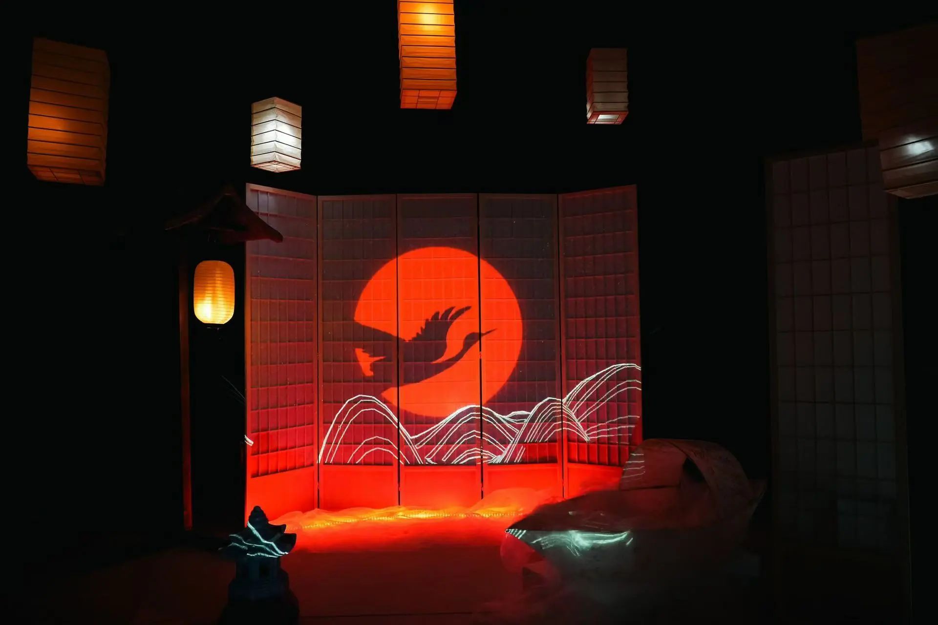 展览主题为“光·音·潮”,是指在光音互动基础上加入盐官潮文化元素,将对时间的思考延展至空间角度,光与音的交融让人们亲身体验时间的变换,潮元素则如媒介将自然与人文历史融合,引导观众在参展过程中开启自我探寻和自然感知。 在这里,光线如同潮汐般涌动,声音仿佛潮水的呢喃,观者在行进的过程中感知光影与声音的相互交织,仿佛潮水般逐渐引领观者进入更深的内心世界。无论是在涌动的光影中,还是在呢喃的声音深处,每一位观众都将在这里与“光·音·潮”共同谱写一曲属于自我的叙事交响。