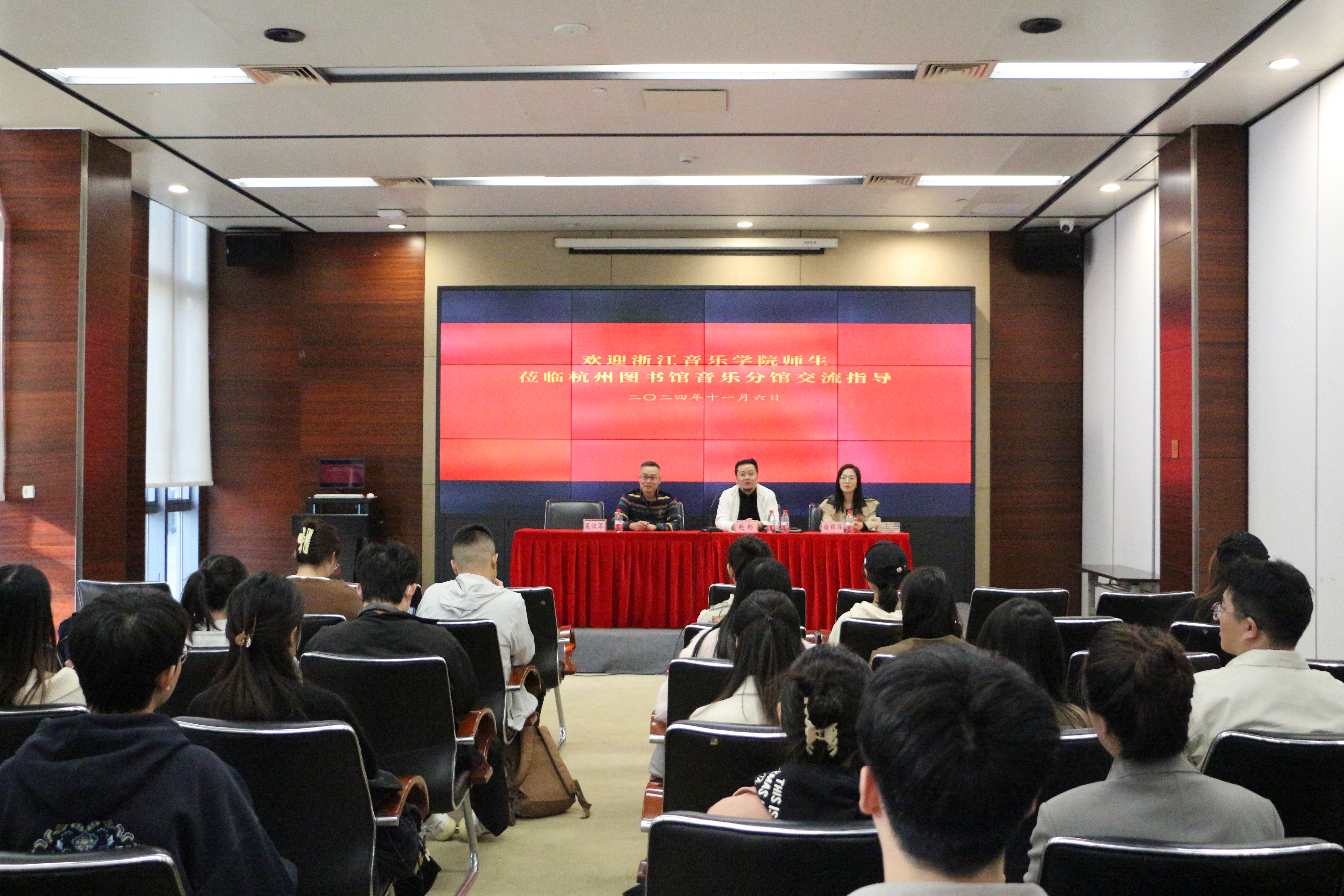 参观结束后,杭州图书馆音乐分馆负责人与同学们进行了面对面的就业交流,他从自身就业经历出发,分享了自己的求职、创业之路,并提醒同学们要加强专业素质的培养,从而提高自己的就业核心竞争力。交流会上,同学们热情高涨,踊跃提问,杭州图书馆音乐分馆负责人对于同学们的疑问一一解答,并以自身丰富的从业经验给予了建议。