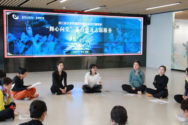 为深入学习贯彻习近平总书记关于志愿服务的重要论述和指示批示精神,全面落实中央社会工作会议精神和全省新春第一会精神,在第62个学雷锋纪念日来临之际,舞蹈学院党总支启动红舞筑梦——“舞心向党”美育普及志愿服务活动,联合杭州市党群服务中心,再次推出公益舞蹈课程。