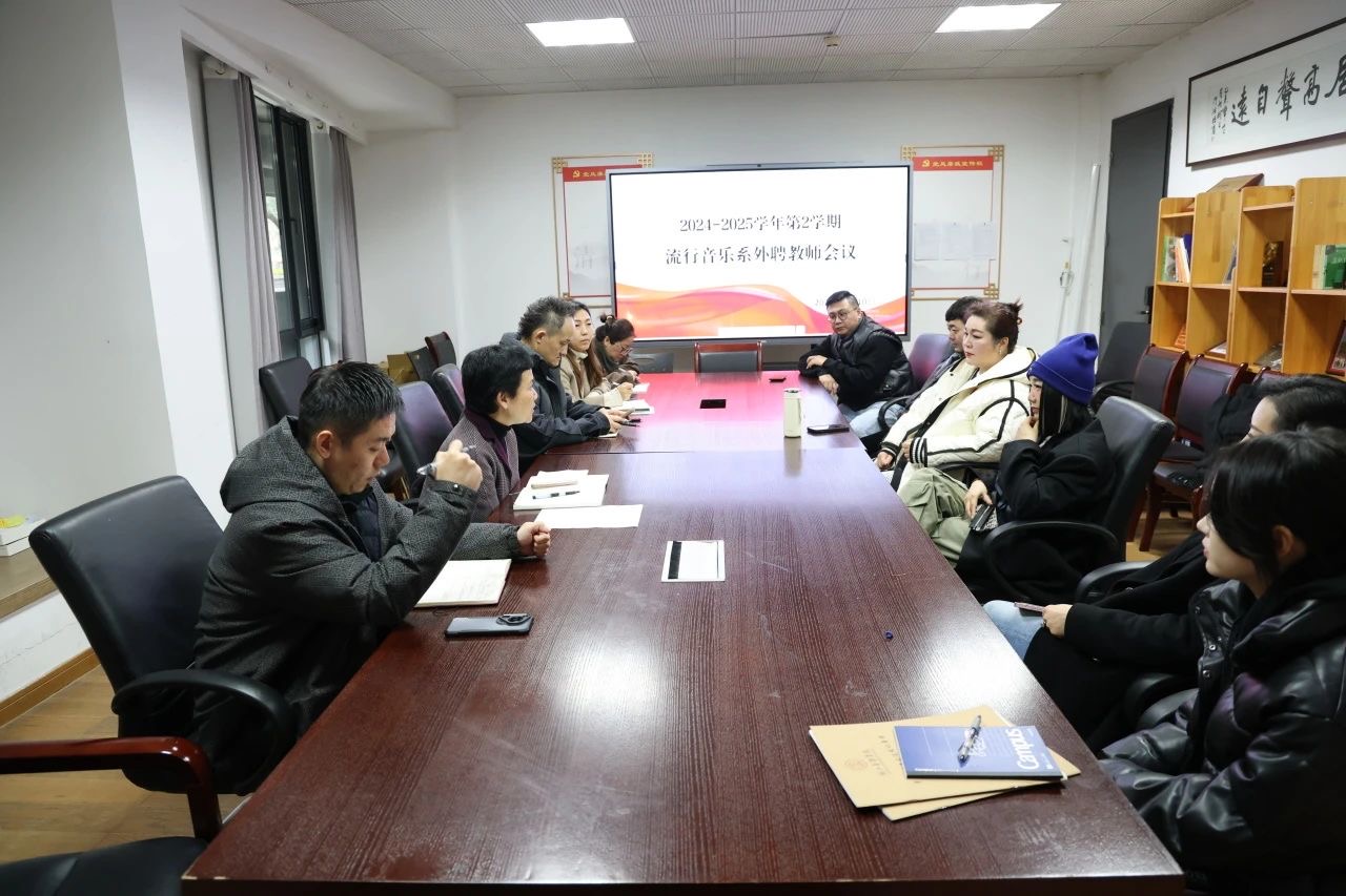 近日,流行音乐系召开2025年第一次外聘教师专题会议。会议由流行音乐系党总支书记叶坚琳主持,系副主任王滔、张正元及相关行政人员、全体外聘教师参加会议。
