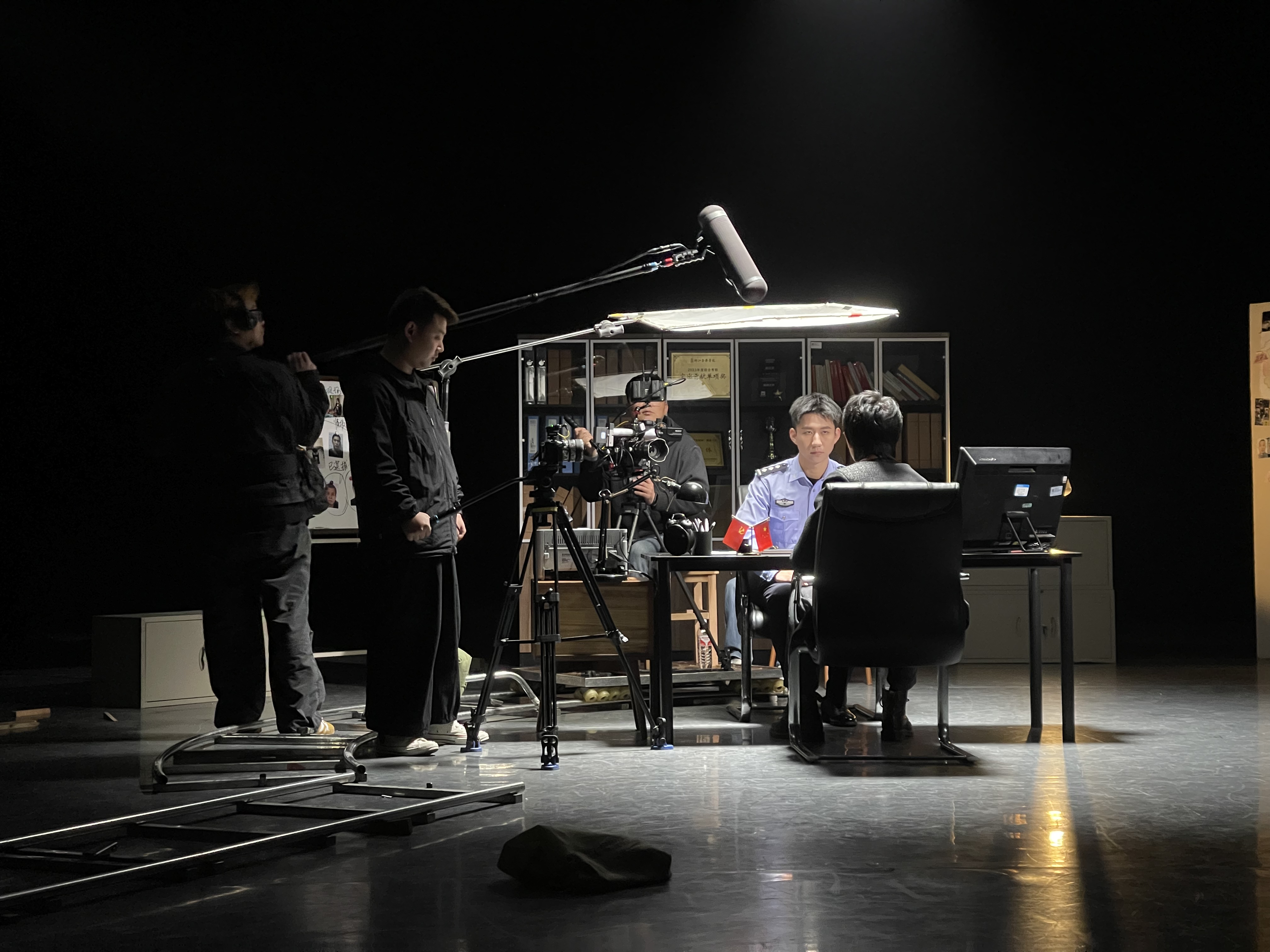 该影片由董杭军、蒋巍监制,张永明指导,青年教师张怡,影视表演221班程子涵、董康主演。影片创新性地结合舞台空间形式,运用舞台电影理念,生动刻画了一位年轻警官面对行贿诱惑时内心的挣扎、矛盾,直至最终坚定信念、严词拒绝的心路历程。在叙事与剪辑上,影片巧妙采用闪回叙事与交叉剪辑手法,展现主人公面对诱惑时脑海中不断闪现的过往记忆。影片更以“镜面”为核心视觉元素,通过其穿插与交叠,深刻隐喻并对比人性中的正义与阴暗,有力阐释了“心有明镜,廉洁执法”的核心主题,体现了廉洁思想内涵。