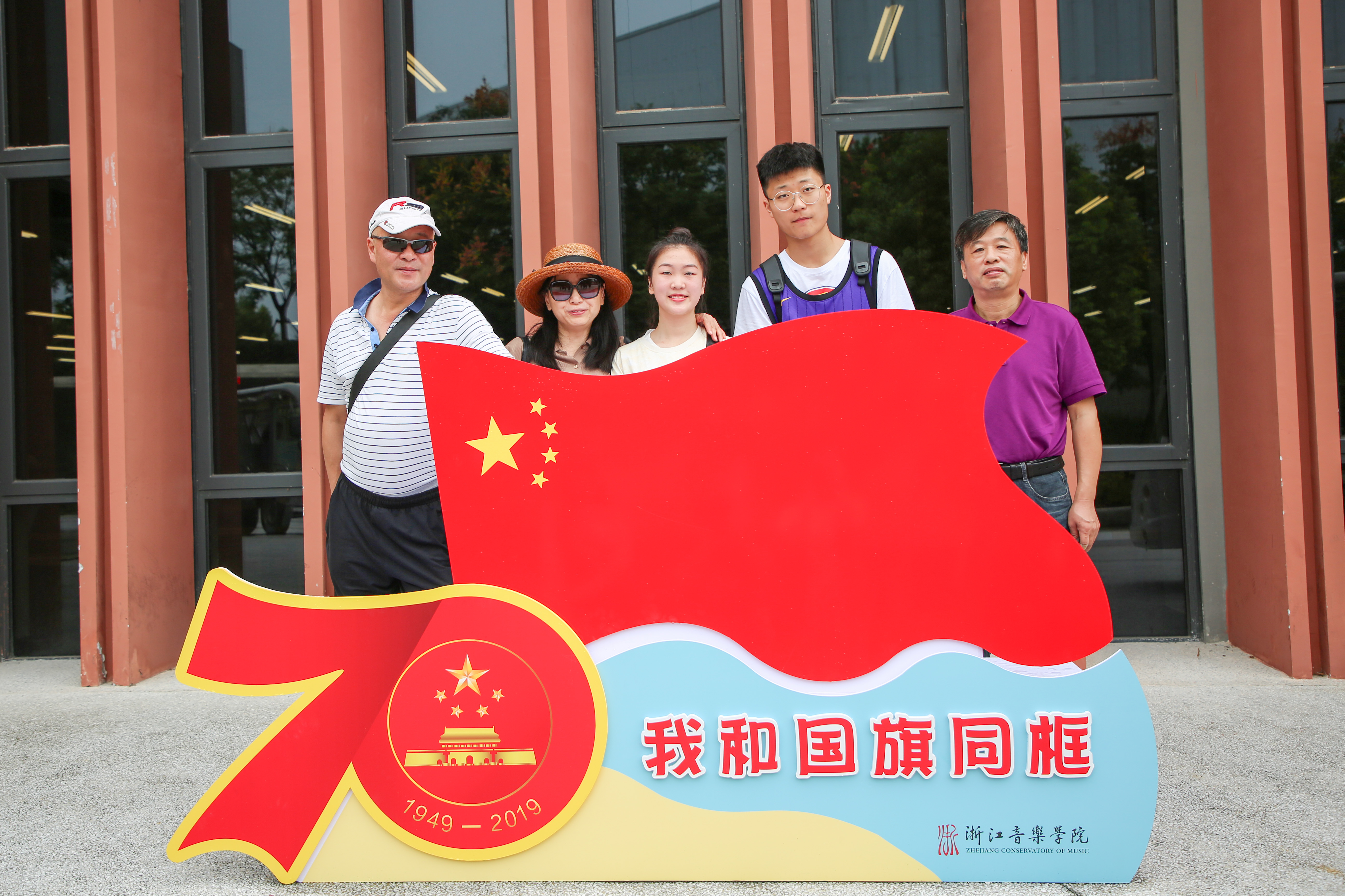 国庆临近,为喜迎中华人民共和国成立70周年,让2019级浙音青年学子更好地抒发自己的家国情怀、爱国之心,学院精心设计、开展了“我和国旗同框”活动。现场,众多新生、新生家长与国旗合照留影,祝福伟大祖国,传承爱国之情。迎新现场,在师哥师姐们的带领下,19级新生自发齐唱校歌,开启爱国爱校第一课。