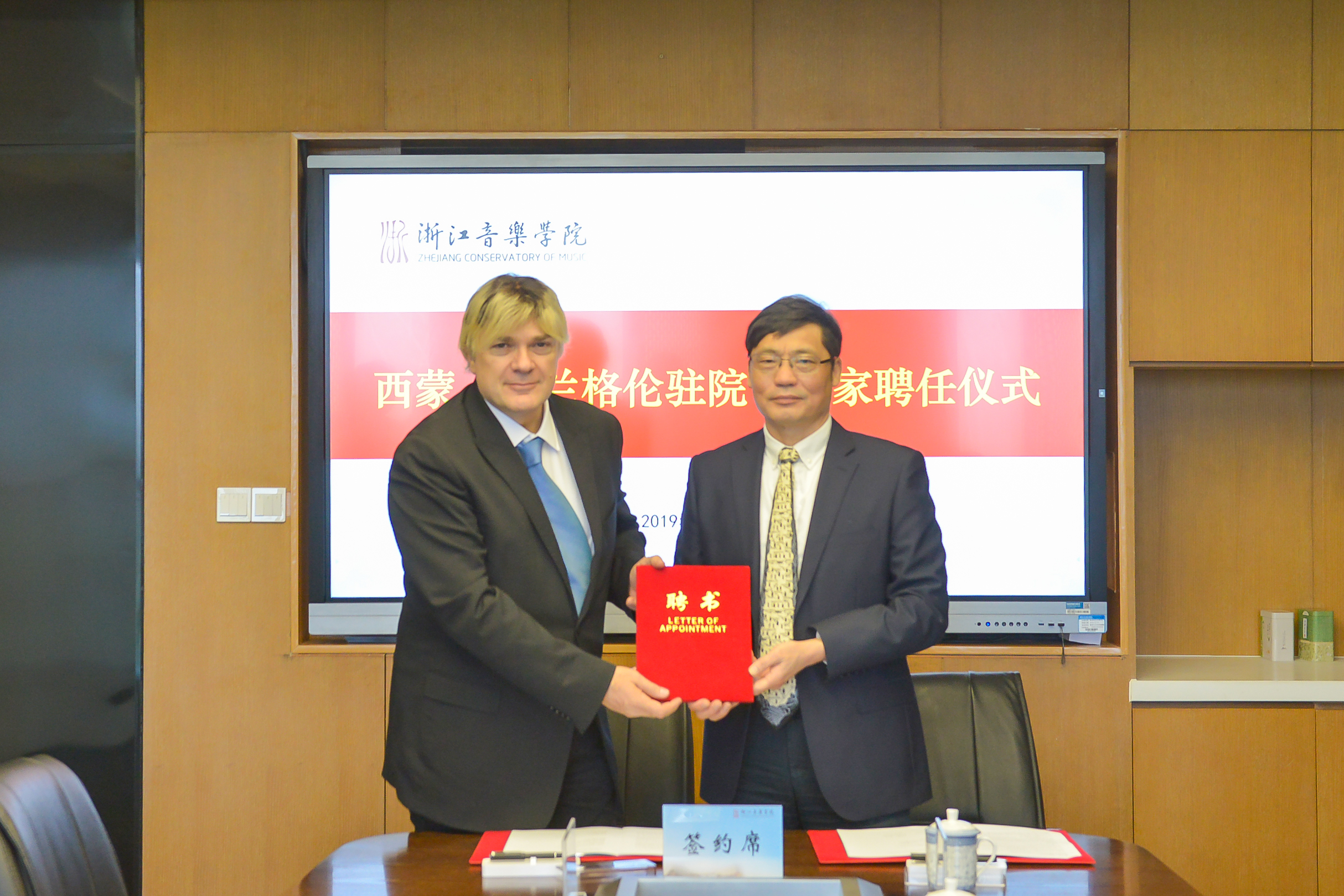 10月21日上午,世界级音乐大师西蒙•弗兰格伦先生签约受聘仪式在行政楼808会议室隆重举行,由此,西蒙•弗兰格伦先生正式成为我院驻院艺术家。西蒙•弗兰格伦先生,学院党委书记胡建新,党委副书记、副院长张建国,相关部门、系部负责人及教师代表等参加会议。