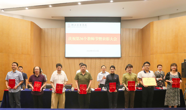 会议表彰了上一年度荣获各类省厅级人才和创新团队荣誉称号的优秀个人和团队,2019-2020年度浙江省“三育人”岗位建功先进集体和个人,2019-2020学年校十佳班主任和辅导员。与会领导为他们颁发荣誉证书。