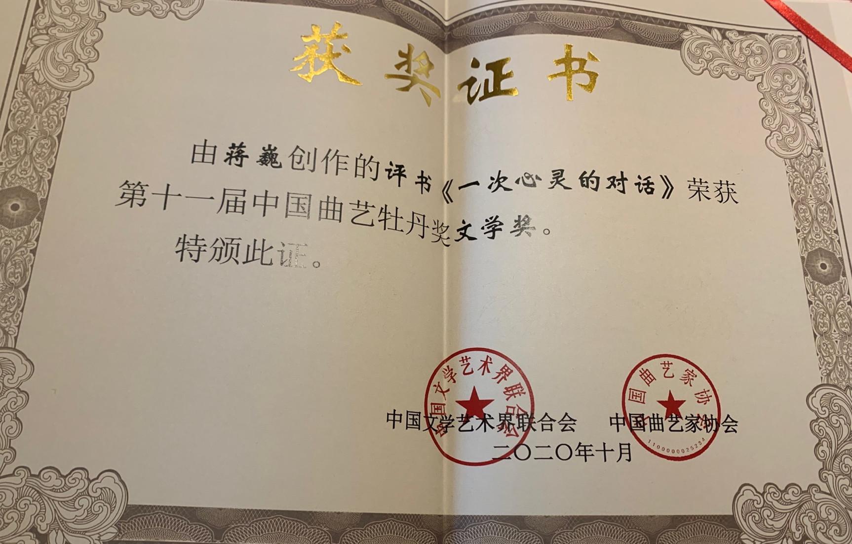 10月15日,第十一届中国曲艺牡丹奖颁奖仪式在江苏苏州举行,我校教师蒋巍创作的评书《一次心灵的对话》,荣获第十一届中国曲艺牡丹奖文学奖。冯小娟表演的杭州摊簧《淑英救弟》,荣获第十一届中国曲艺牡丹奖节目奖。“中国曲艺牡丹奖”是由中国文联和中国曲艺家协会共同举办的全国性曲艺艺术专业奖项,是我国曲艺界的最高奖项。本届中国曲艺牡丹奖共评选出节目奖5个、表演奖6个、文学奖4个和新人奖5个。