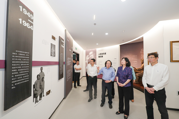 孟冬一行首先参观了大剧院、周颖音乐厅、现代音乐厅等设施场所,饶有兴味地观看了学院主办的《毛泽东诗词艺术歌曲音乐会》现场排练,对学院建校以来在硬件建设、人才培养、艺术创作、文化服务等方面取得的成果给予高度评价。随后,孟冬一行走访了数字音乐(浙江)省工程研究中心、施光南音乐艺术馆等。在数字音乐(浙江省)工程技术研究中心,她详细询问录音棚的规模、功能及特色,现场赏听了研究中心制作的高质量音乐作品,对研究中心下一步更好服务地方文化建设,促进产教融合提出宝贵建议。在施光南音乐艺术馆,她仔细观看了馆藏图片和实物,表示作为新中国乐坛上成就卓然的作曲家,作为“时代歌手”与“人民音乐家”,施光南始终坚持把爱国作为音乐创作的永恒主题,为人民书写创作、为时代谱写赞歌,是我们开展党史学习教育和音乐通识教育的宝贵素材,希望学院进一步发挥好、拓展好艺术馆在思政教育、专业教育、学术研究等方面的重要功能。孟冬一行还参观了《音乐—绘画联觉艺术创作与实践》课程优秀学生作品展,对学院在人才培养过程中将音乐与美术进行跨学科交叉融合的理念和思路给予赞扬。
