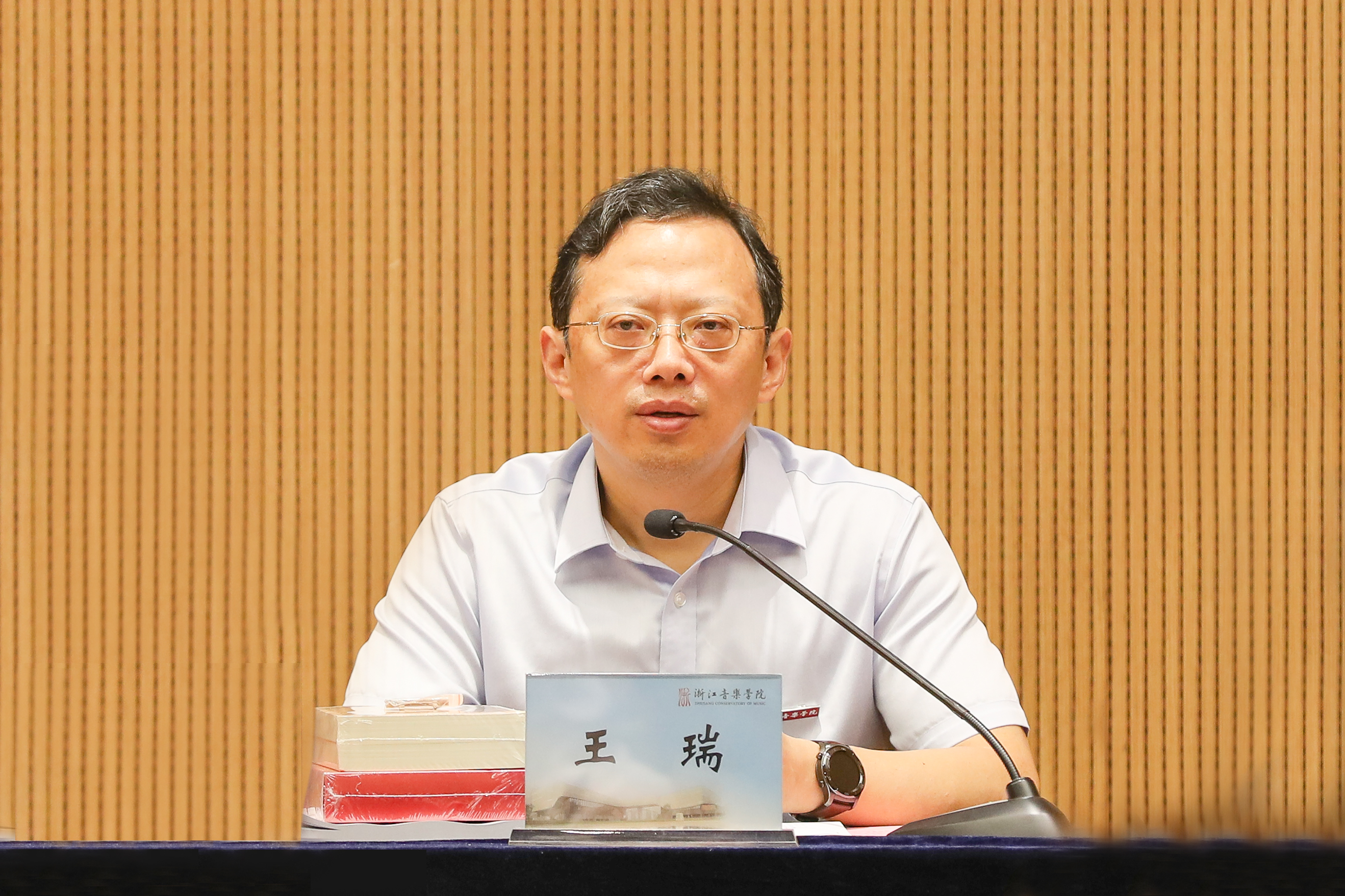 王瑞代表学院向新进教职工致欢迎词。他表示,人才资源是学院发展的重要资源,人才优势、人才机制、人才竞争力,是学院实现跨越式发展的核心竞争力。作为一所年轻的音乐学院,从成立至今,学院实现了跨越式发展,各项事业取得了长足进步,这一切都需要人才支撑。近年来,学院开展了一系列制度创新和改革推进人才建设,在引进人才的基础上,深入思考怎样留住人才、让人才在学院有更好的发展。他强调,浙音作为一所高校,也是一家文化单位,作为浙音教师,既要教书育人,为社会培养德艺双馨的艺术人才,也要以优秀的文艺作品健全精神、滋养心灵、优美人格、铸就灵魂。同时,作为浙音人,也应当对学院的大学文化、大学精神和价值观达成共识,使之成为每个浙音人追求的目标,成为我们的气质和品格,成为推动学院发展的精神动力。此外,王瑞还传达了中国文联文艺工作者职业道德和行风建设工作座谈会的有关精神,学习传达了全国文艺工作者《修身守正 立心铸魂——致广大文艺工作者倡议书》。