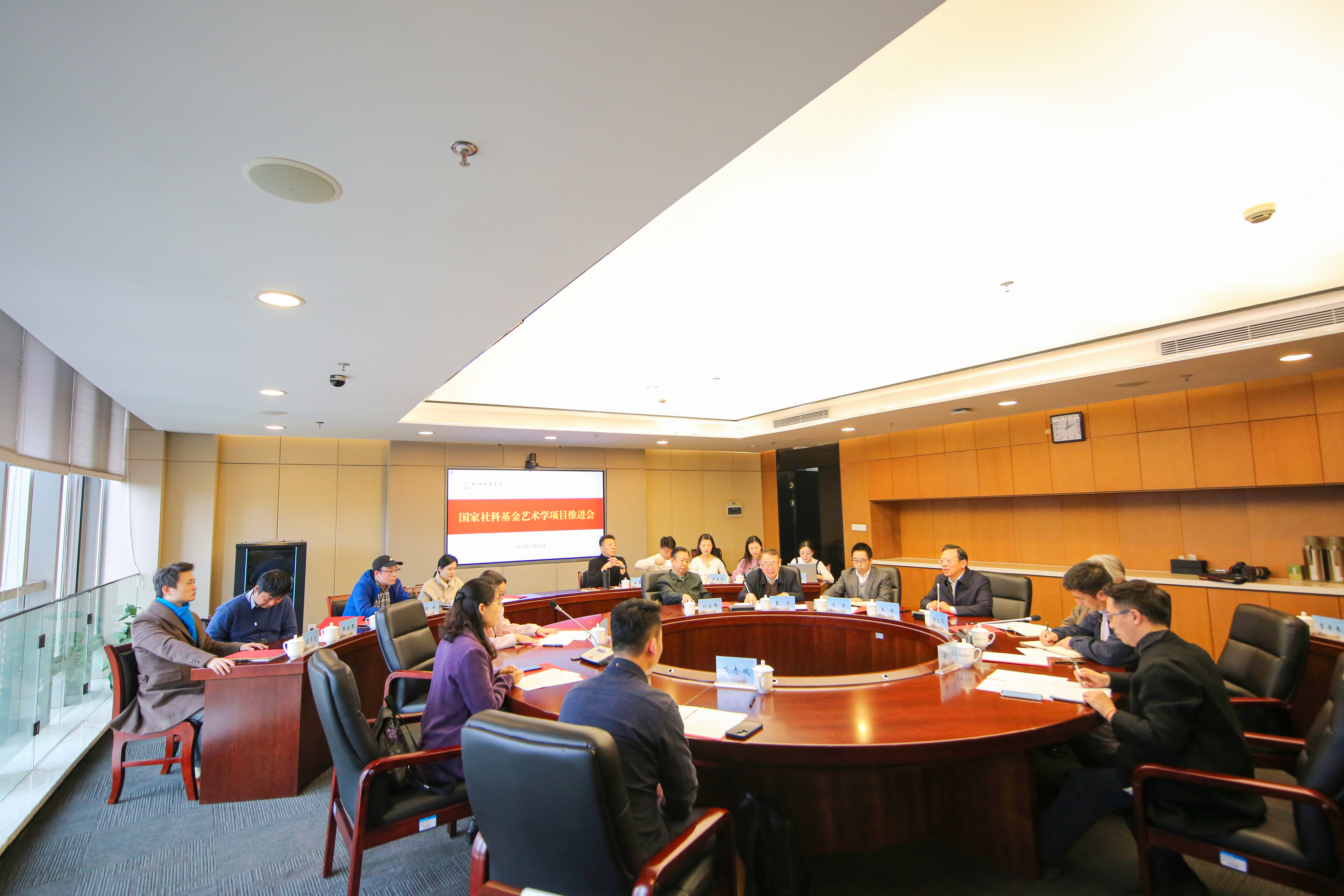11月19日下午,学院国家社科基金艺术学项目研究推进会在行政楼706会议室召开,文化和旅游部科技教育司社科处处长王卉一行3人来校指导项目相关工作。学院院长王瑞,副院长杨九华、汪洋,国家社科基金艺术学重大项目及在研项目首席专家、项目负责人、项目成员,以及发展规划处(科研处)相关负责人出席会议。