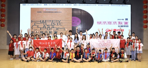 “快乐音乐教室”项目是集“思政教育、艺术教育、实践教育”三位一体的社会实践公益项目。项目秉承“事必尽善”校训,旨在使大学生主动服务社会,通过社会大环境检验自身思政教育成果,让文化艺术走进公众,助力乡村文化教育振兴,打造有“温度”有“情怀”的社会公益实践项目。团队由学院优秀学生为主体成员,从2017年成立至今,先后赴贵州开展“文化扶贫”,赴台州等基层文化礼堂开展“文艺下乡”,赴嘉兴、诸暨农村小学开展艺术支教等活动,足迹遍布10余个市、县、乡,社会影响较好。2019年,该项目入选浙江省改革开放40周年特展,团队代表学院参加全省社会实践展示并受表彰,连续三年获得“创新团队”“先进团队”等荣誉,并被光明网、浙江新闻、浙视频、中国蓝新闻、浙江在线、《钱江晚报》等多家国家级、省级主流媒体报道。