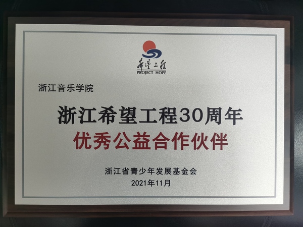 12月2日,团浙江省委、浙江省青少年发展基金会在杭州召开浙江希望工程实施30周年座谈会,深入传达学习袁家军书记的批示精神,并公布了省希望工程30周年“突出贡献者”“优秀公益合作伙伴”“希望之星”和“模范希望小学”名单。学院“快乐音乐教室”项目受到表彰,并荣获“浙江希望工程30周年优秀公益合作伙伴”(全省高校仅三所)。