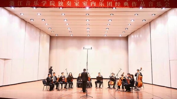 此次音乐会由著名旅德指挥家焦阳执棒,学院管弦系优秀教师组成的独奏家室内乐团演奏,为现场观众呈现了一场精彩纷呈的听觉盛宴。无论是莫扎特欢快奔放的《D大调弦乐嬉游曲》、德沃夏克优美典雅的《d小调管乐小夜曲》,还是舒伯特为室内乐队谱写的小型交响曲《第五交响曲》,均展示了演奏家们深厚的音乐素养、精湛的演奏技艺和融洽的协作精神,体现出学院打造国际一流室内乐团的非凡实力。