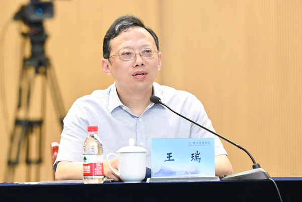 论坛上,王瑞指出,中华文明博大精深,中国音乐源远流长。中国音乐以其深邃的宇宙观、自然观和历史观,卓越的实践精神和人伦意识,建构了中华民族独特的礼乐文明、价值理念和人文精神;音乐是时间、思想的艺术,以无需翻译的世界语言,缔结了不同国家地区人民情感交流、民心相亲、共情共生的桥梁和纽带。中华优秀传统文化是中华民族的精神命脉,只有扎根脚下这块土地,文艺才能接住地气、增加底气、灌注生气,在世界文化激荡中站稳脚跟。他认为,中国音乐创作和研究中心的成立,是学院立足新时代、深扎中华优秀传统文化,所建构的新型学科创新平台和创作人才荟聚的高地,也是学院汇集整合海内外音乐创作与教学研究资源,对中国音乐创作、表演、教学、研究进行系统性规划的重要举措,更是探索具有时代性、引领性的中国音乐新方向,构建中国音乐独立的艺术品格和审美的有效途径。王瑞指出,中心将坚定“以人民为中心”的创作导向,努力推进守正创新,把中华优秀传统文化和当代审美追求结合起来,着力推动和开展具有中国特色、时代特征的音乐创作和研究。他表示,浙音是面向世界的音乐学院,始终坚持开放办学和国际化的办学导向,始终追求对人类命运的普遍关怀。他诚挚欢迎来自世界的创作、表演、研究人才来到浙音,以中国音乐创作和研究中心为平台,共同创作和展现具有新时代特征、浙江特色、中国气韵的原创作品,以中国音乐之美讲好中国故事,传播中国文化,展现中国风采,弘扬中国精神。