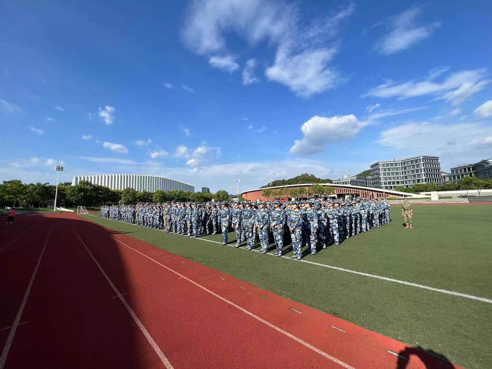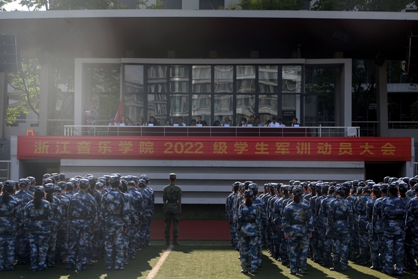 9月5日下午,2022级本科新生军训动员大会在学院田径场举行。学院党委副书记蔡亦军、副院长杨九华,中国人民解放军驻杭某部队中校陈朋,驻杭某部队上尉、学生军训营营长刘敏,相关部门负责人、各院系二级党组织负责人、全体辅导员、新生班主任代表、承训部队教官,以及672名本科新生出席动员大会。大会由学生工作部、人武部负责人主持。