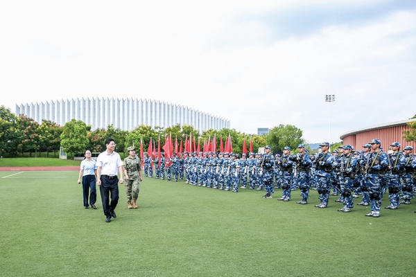 9月16日下午,学院2022级本科生军训总结大会在田径场举行。学院党政领导班子成员干武东、王瑞、王均寅、蔡亦军、杨九华、张伟波、应达伟、李俊,中国人民解放军驻杭部队中校副参谋长夏武宁,学院相关职能部门、各院系党政负责人,全体带训教官、助理教官、辅导员、新生班主任及受训学生参加。总结大会由副院长杨九华主持。