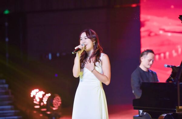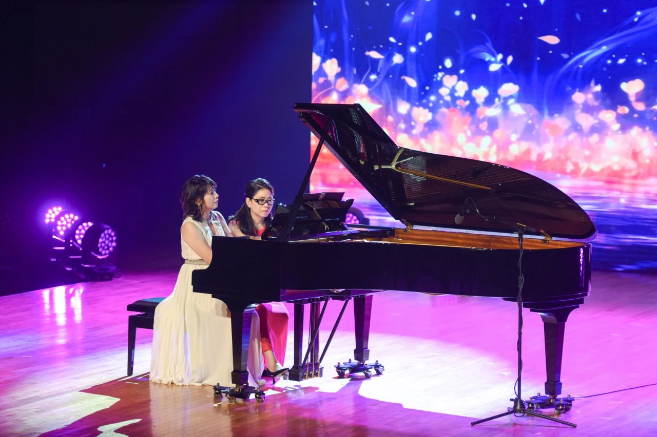 音乐会中,钢琴系教师朱楣、徐洁以精湛技艺演绎了钢琴四手联弹《花儿为什么这样红》,音乐学系教师洪艳、音乐教育学院教师卢思嘉演唱的歌曲《阡陌江南》犹如一幅音符绘制的江南水墨画,清澈嘹亮的嗓音将江南水乡的秀美景色展现得淋漓尽致。流行音乐系教师王滔与马来西亚留学生陈颖雯深情演唱歌曲《故乡》,展现了全球华人血脉相连的真情实感。音乐会的尾声,全体表演者与观众齐声合唱《我爱你中国》,伴随着悠扬的旋律,现场气氛愈加热烈,浓浓的爱国情怀在场内激荡。