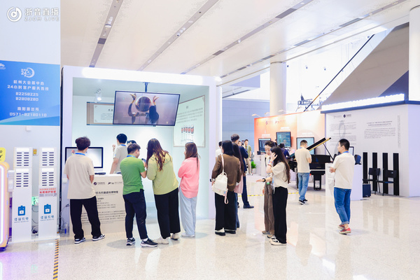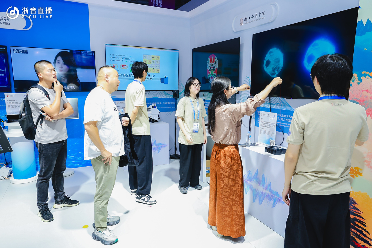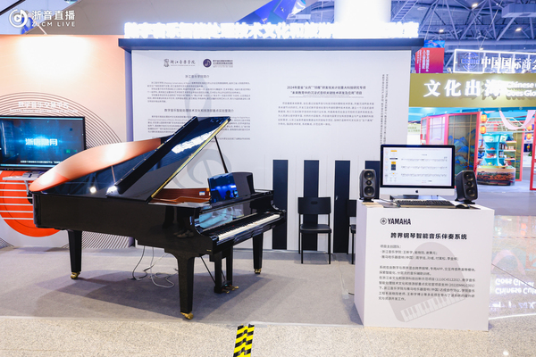 展馆中,一台无人演奏的钢琴吸引了观众的目光。输入乐谱、琴键跃动,仿佛一位隐形演奏家正在现场弹奏,曼妙音乐流淌而出,吸引了不少观众即兴演唱。这是浙音和雅马哈乐器音响中国公司共同研发的跨界钢琴智能音乐伴奏系统,能够解决音乐学习、演奏、娱乐场景中伴奏缺乏的问题。此外,浙音师生还带来符号音乐生成大模型、原创数字音乐展示、数字音乐交易平台等多件展品,具有广泛的应用场景。