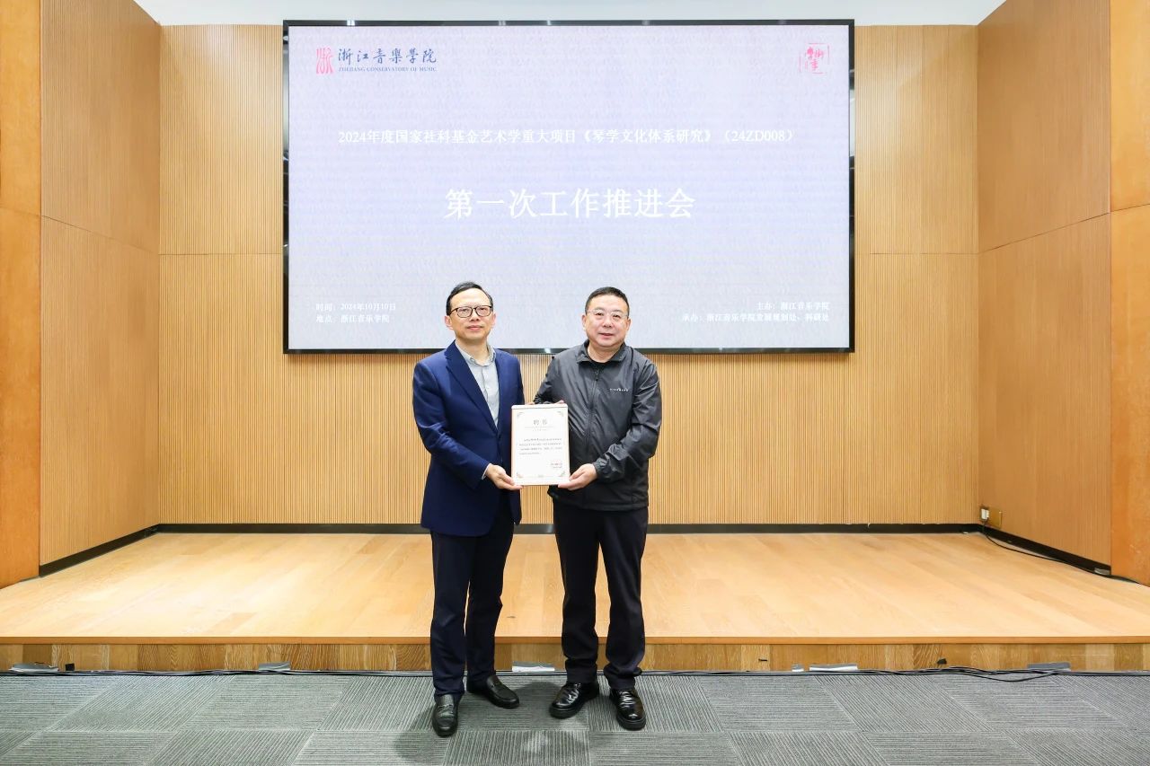 张广洲充分肯定了浙音近年来围绕“高水平一流音乐院校”办学目标,以改革创新为动力,以理论研究机构和艺术创作实践团体为依托,在人才培养、科研创新、师资建设、社会服务和内部治理等方面取得的显著成效。琴学文化作为最典型、最具代表性的传统文化之一,对中国历史发展产生了重要影响,具有博大、深刻、厚重的文化意义、社会意义和教育传播价值。他表示,将大力支持课题推进落地,并期待项目团队充分利用好国家社科基金艺术学重大项目研究的平台与契机,以高质量成果推动古琴艺术的传承发展。