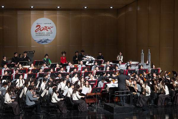 音乐会在《金蛇狂舞》的热情洋溢中拉开序幕,这首民族管弦乐以其鲜明的特色预示着新年的活力与希望。随后,一曲《雪意断桥》以其生动的笔触描绘了江南美景以及对人世间温情的赞美;戏剧系越剧专业学生陈佳慧以越剧演唱方式改编流行音乐《花妖》,与学生陈珂菡共同演唱越剧《天上掉下个林妹妹》,展现了当代青年对传统文化的传承与创新;罗小慈作曲作品《律动》由浙音民族室内乐团古筝演奏家楼琳与乐队合作演奏,创新采用多种艺术手法,展现了古筝丰富的音乐内涵和震撼的气势;浙音副教授刘宇、青年二胡演奏家裴文钰和乐队合作演奏了刘天华的经典作品《良宵》,该曲旋律悦耳动听,展现了与朋友共度守岁时光的欢乐和对未来的美好憧憬。