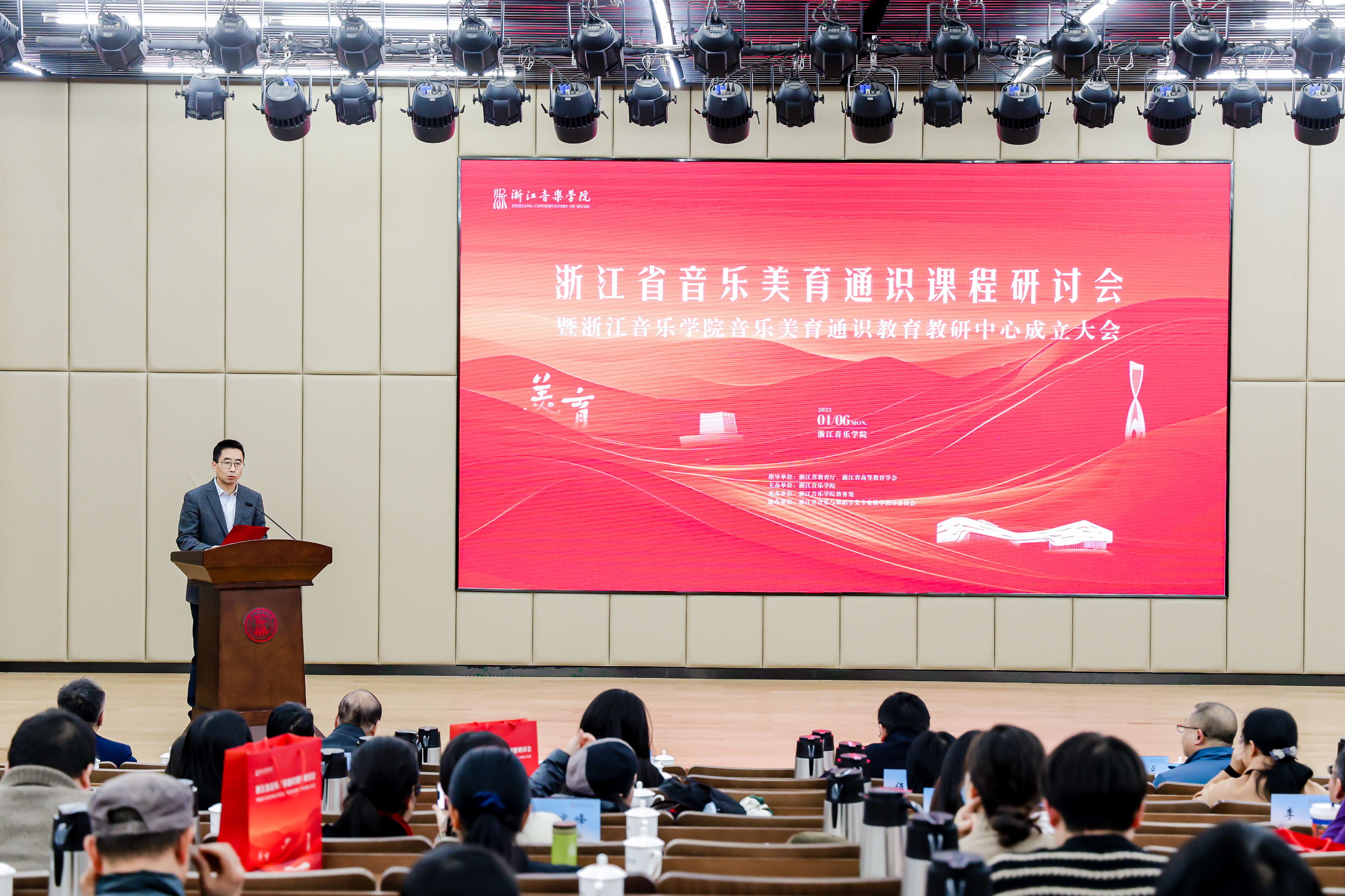 研讨会围绕音乐美育通识课程的构建与实施、教学方法创新与改革等主题展开深入探讨,各位专家学者在思维交汇间凝练真知灼见,在观点碰撞中探寻多元视角,共同为浙江音乐美育事业贡献智慧与力量。陶辛作“音乐美育的人文意义”的主题报告,他以深厚的学术功底,结合大量案例分析,深入浅出地从音乐的情绪感知、气氛沉浸、情感体验、文化体认、审美观照等方面阐述了音乐的功效。浙江工商大学教务处处长伍蓓、浙江中医药大学教务处副处长季旭明、浙江大学公共体育与艺术部副主任兼公共艺术教育中心主任周怡如、宁波大学音乐学院副院长王蕾分别作经验分享。 施建祥作点评总结。