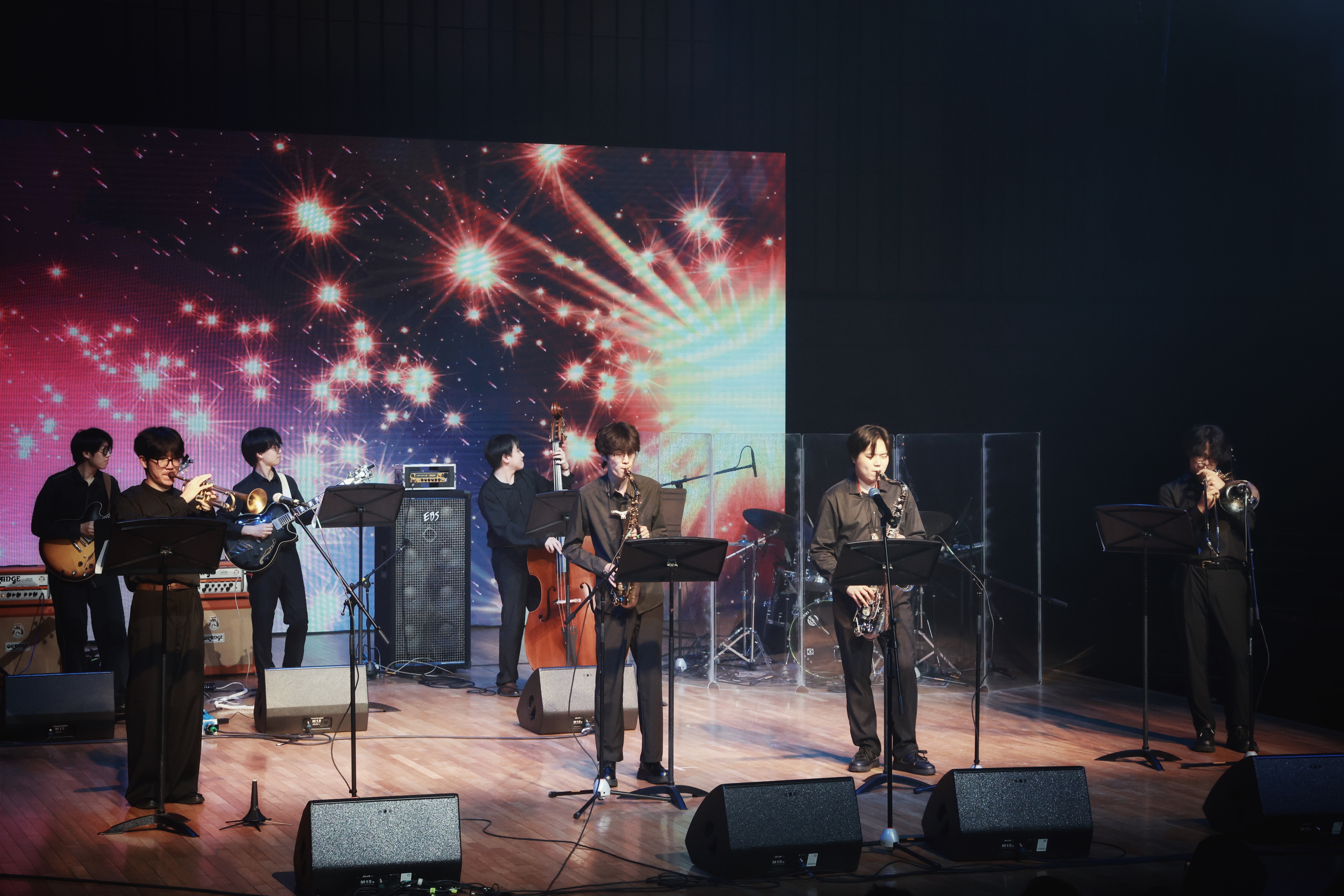 本届爵士音乐周开幕式音乐会以原创《Your Mother》拉开序幕,音乐会包含爵士、流行摇滚与交响乐,每一次演绎都呈现了经典与创新的双重维度;闭幕音乐会由浙音师生与三座格莱美奖得主、艾美奖提名、全球音乐大奖获得者,美国爵士音乐家、作曲家和教育家 Dr.John Daversa联袂呈现,打造了一场多元文化碰撞的视听盛宴。两场音乐会除了流行音乐系师生外,管弦系10余名学生也倾情加入,生动展示了浙音人才培养体系的构建成果,是一场全面的人才梯队展示,既完成地域音乐文化的学术化呈现,也体现了学院对爵士乐表演技术的深思与探索。